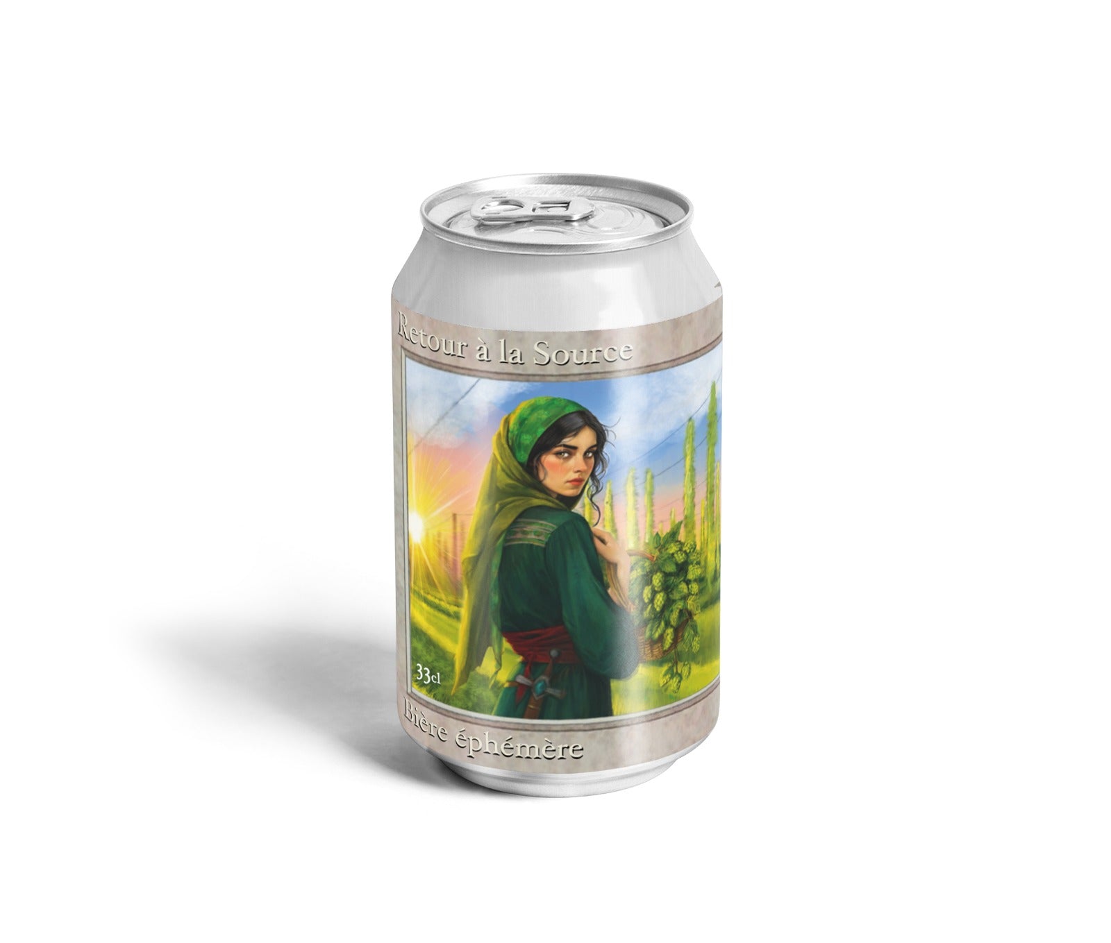 Pour l'occasion du Mana Source, on a brassé une bière en collaboration avec les organisateurs. Elle a été nommée ''Retour à la Source'' en hommage à la célèbre carte ''Retour au Pays'' (Swords to Plowshares) et son design y fait également référence. Avec un nom pareil, il nous semblait évident de brasser une bière 100% belge et locale. Du coup on a choisi la pintabilite, avec une Pils bien sèche et glouglou qu'on a dry hoppé subtilement avec du houblon Cascade (belge).